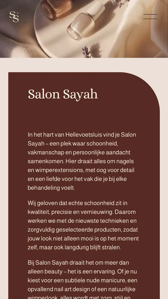 In het hart van Hellevoetsluis vind je Salon Sayah – een plek waar schoonheid, vakmanschap en persoonlijke aandacht samenkomen. Hier draait alles om nagels en wimperextensions, met oog voor detail en een liefde voor het vak die je bij elke behandeling voelt.